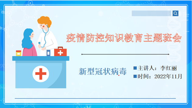11月3日20:00,beat365官网扩招生一分部开展了一次线上“疫情防控知识教育”主题班会。本次班会由班主任老师李红丽主持。