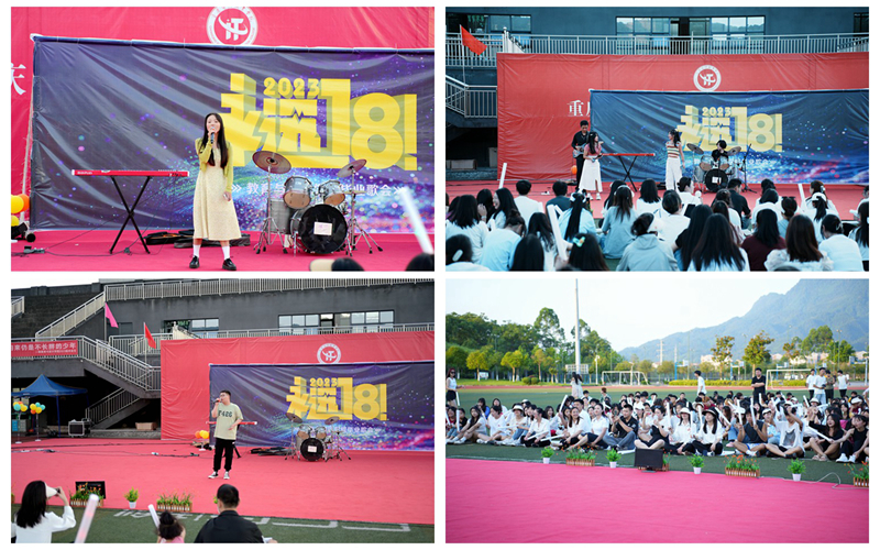 这场音乐会是一场献给2023届全体毕业生的狂欢,一首接一首的音乐组成了这一场精彩的晚会。开场舞《你要跳舞吗》将现场气氛直接拉到顶点,《失恋阵线联盟》、《你是人间四月》、《蒲公英的约定》、《后来》、《爱的飞行日记》一首首代表青春的歌曲精彩上演,展现出专属青年的音乐氛围,让同学们在愉快的歌曲当中,享受快乐与自由。《危险派对》、《是你》、《小幸运》、《New boy》四首歌曲让大家暂时忽略了炎热的天气,感受脉搏与音乐的同频生长。最后,“永远18!”毕业歌会在优秀毕业生代表周相顺同学演唱的歌曲《你曾是少年》中,圆满落幕。