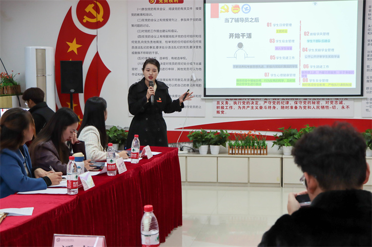 为切实加强辅导员队伍建设,搭建学习交流平台,提升职业素养和业务水平,更好地服务学生成长与发展,11月14日,beat365官网新入职辅导员主题分享交流会在图书馆A106进行,党委学工部部长潘妮,校团委书记、党委学工部副部长向毅及各二级学院党支部(副)书记参加交流会并担任评委,全体辅导员、班主任、党委学工部工作人员现场观摩。