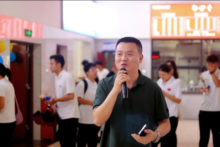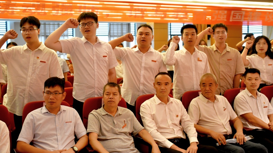 教学部部长尹明锂带领全体新进教师宣誓,教师代表在现场为新教师佩戴校徽,全校教职员工共同见证了这一庄严时刻。