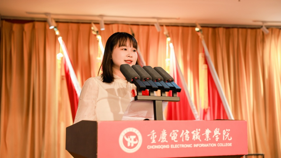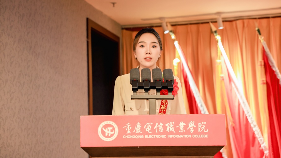 教育与设计学院教师陈贤湫作为优秀青年教师代表发言。她表示,在电信学院这一年的成长进步表示离不开学校提供的“成长平台”、离不开学院领导与同事的“温暖托举”、离不开学生们“配合支持”,未来将以教育家精神为指引,用更饱满的热情、更严谨的态度投入工作,为培养更多优秀高素质应用型人才贡献力量。